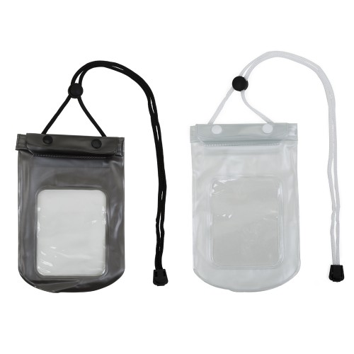 Case impermeável para smartphone personalizada, fechamento á vácuo e através de abotoamento, com cordão de nylon, fabricado em PVC.