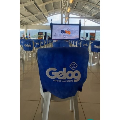 Capa de cadeira personalizada confeccionada em TNT 80 Gramas, indicada para congressos, convenções, eventos, igrejas, cinemas e festas.