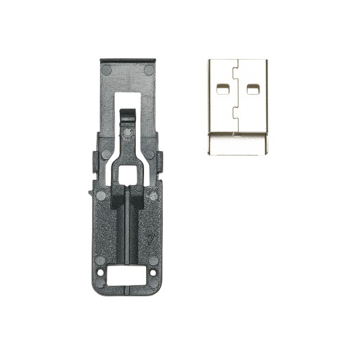 Adaptador para memória COB. Para utilização, encaixe a memória na carcaça plástica e em seguida encaixe-as na parte metálica. Após junção, não é possível desmontá-la.