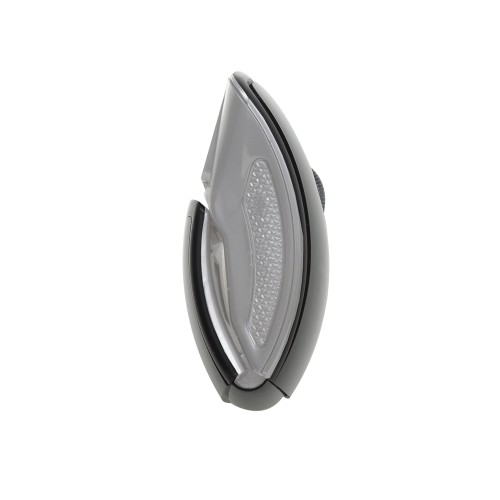 Mouse óptico personalizado de tecnologia wireless e retrátil. Mouse anatômico de material plástico resistente, possui rolamento plástico translúcido, laterais texturizadas, parte traseira dobrável, luz inferior óptica vermelha, receptor Nano USB 2.4 GHZ. Funcionamento através de 2 pilhas AAA(não acompanha).