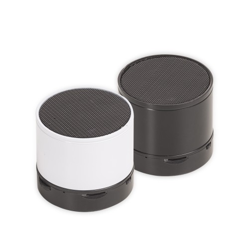 Caixa de som multimídia personalizada com Bluetooth e rádio FM. Material metálico, possui a parte inferior com detalhes em relevo de algumas funções: botão Off/On; entrada para cartão MicroSD. Parte inferior com detalhe emborrachado anti-deslizante, acompanha cabo USB/Aux para recarregar.