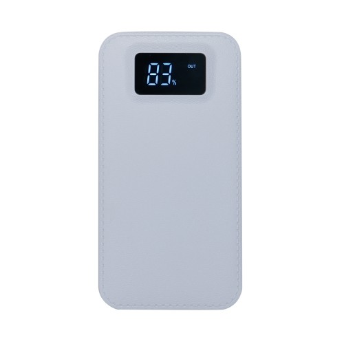 Power bank personalizado produzido em plástico resistente com texturização semelhante à couro sintético. Possui entrada DC 5V e duas saídas DC 5V, visor digital preto com porcentagem de 100 à 0%, bateria de 3200mAh. Acompanha cabo USB. Compatível com celulares, iphone, ipad, ipod, tablets, mp3, câmeras dentre outros eletrônicos.