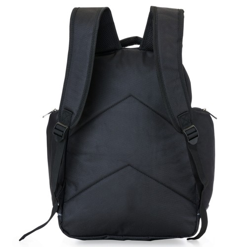 Mochila preta com detalhes cinza, possui dois bolsos laterais e alça revestida com espuma para um maior conforto.