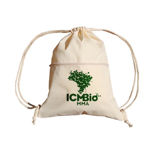 Mochila Saco Ecológica confeccionada em Algodão Cru Com Bolso Frontal.